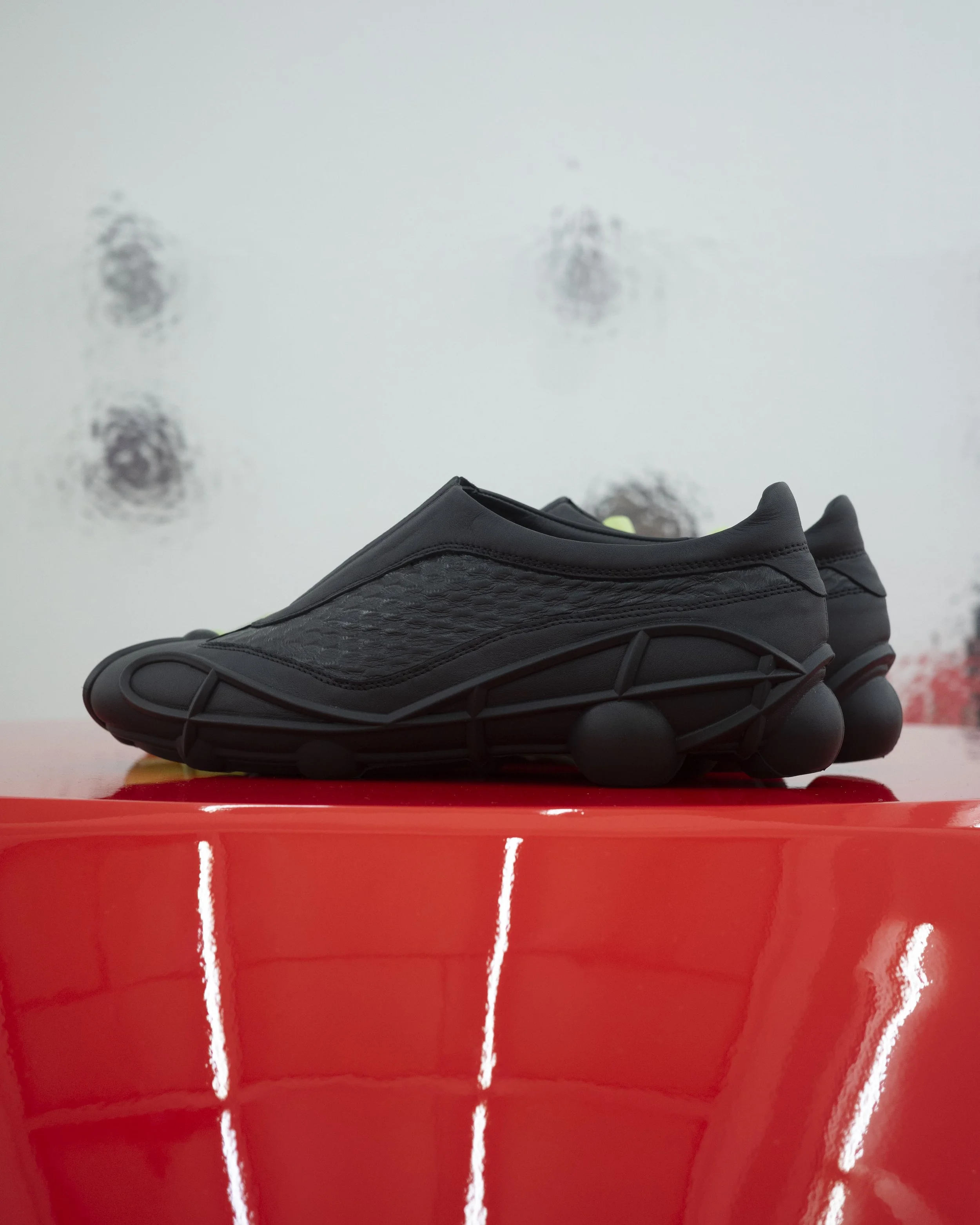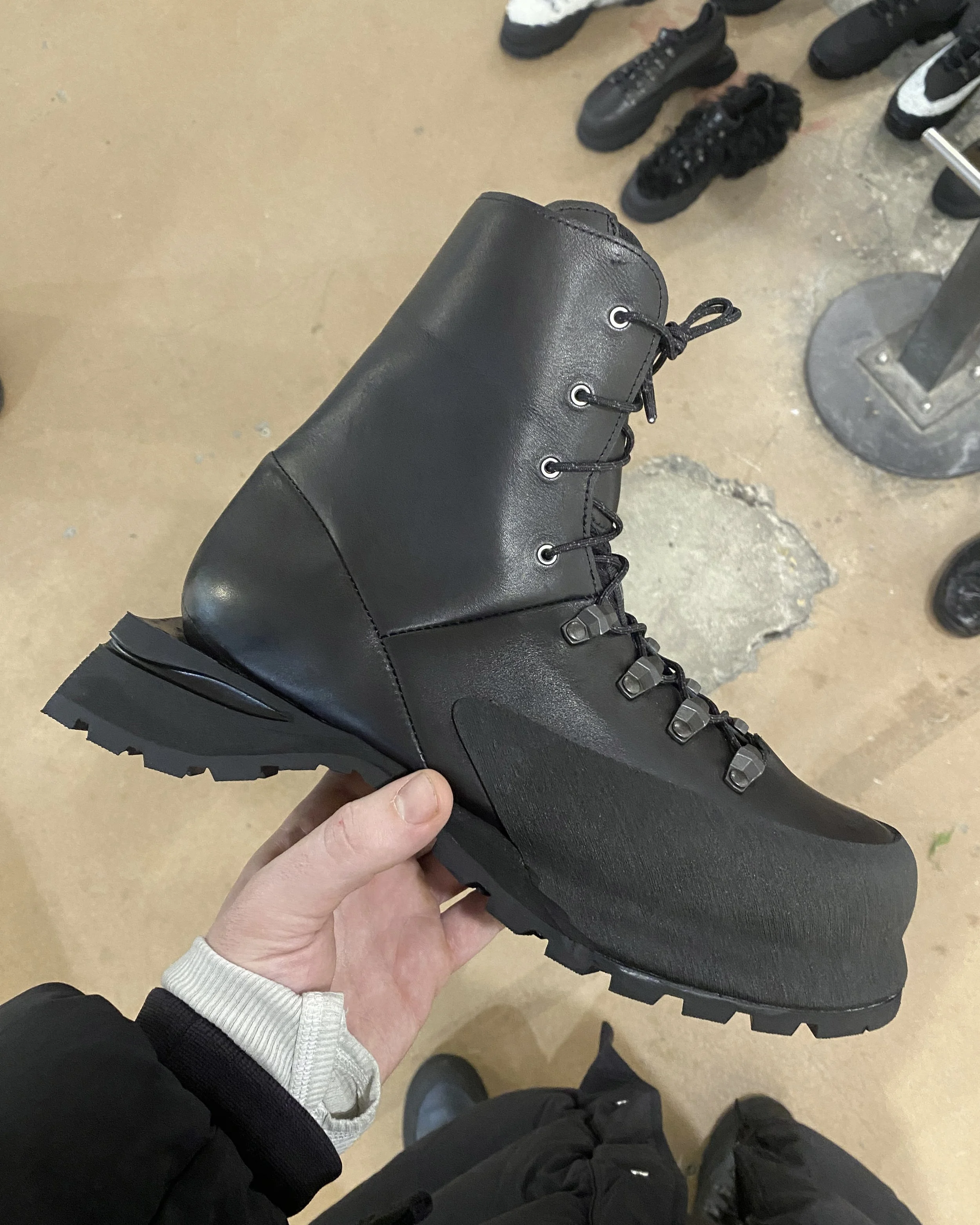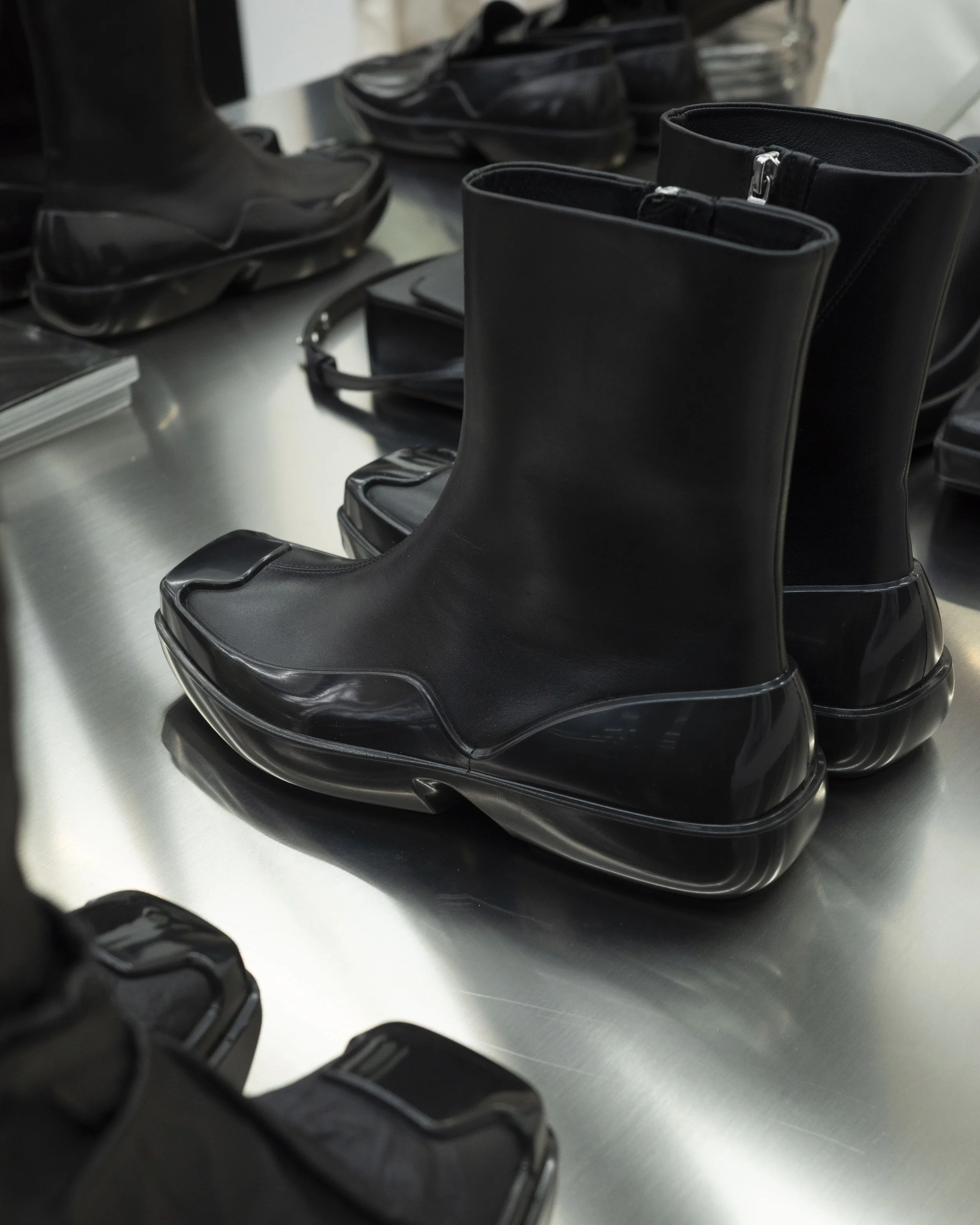 As the dust settles from the whirlwind that was Paris Fashion Week Men’s FW24, we sat down to debrief on the product highlights that we experienced. This season we felt an emphasis towards the hybrid shoe; cross-utilitarian function in the form of material selection, the mixing of product categories and the creation of entirely new ones. Y-3’s Kyasu boot embodies this multi-functional nature by offering a slide that is entirely covered by a sculpted leather overboot. ALIVEFORM debuted a selection of new 3D-printed silhouettes including the ‘Flaine Hybrid’ - a maryjane strapped low-pro shoe with extra outdoor aggression. At.Kollektive continued their innovation programme with season two of leather offerings from Kiko Kostadinov, Peter Do and Nina Christen, developing on the success of previous outsole toolings and pushing a selection of new models. Elsewhere, Roa Hiking and Suicoke both introduced new silhouettes with a focus on casual outdoor comfort. In particular the toe-down shaping and heel detailing of Roa’s new Sella model caught our interest. Athletics FTWR are blazing their own path with the building of their own proprietary technologies, which they plan to continue developing into product which performs with the best. Both Demon Footwear and AKMÉ showed why they’re still ones to watch with updated executions in the hybrid utilitarian boot category. Finally, we couldn’t miss the hybrid of hybrid’s from Junya Watanabe x New Balance’s 1906 loafer. Certainly not the first cross-utility loafer but definitely one of the most well integrated and balanced interpretations we’ve seen.