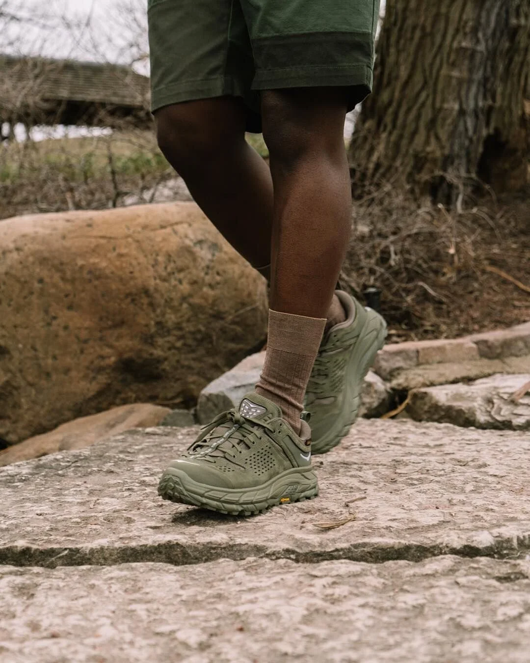 Founded by former Salomon employees as a maximalist response to the stripped-back running shoes on offer from contemporary brands, Hoka One One (pronounced on-ay on-ay) bear no shame in their oversized, voluminous soles. Originally intended for trail-ultra running, the all-out cushioning is key to the functional performance that has carried the brand to the top of the industry in little more than a decade. Their ability to lend function to the form of aesthetically pleasing footwear has been enforced by their partnerships with the father of the Nepenthes family: Engineered Garments. Reworking one of Hoka’s boots into a low top trail shoe, the Tor Ultra Low employs a chunky Vibram sole with a plethora of shape arrangements; this is then finished off with a miniscule hexagon formation tread.