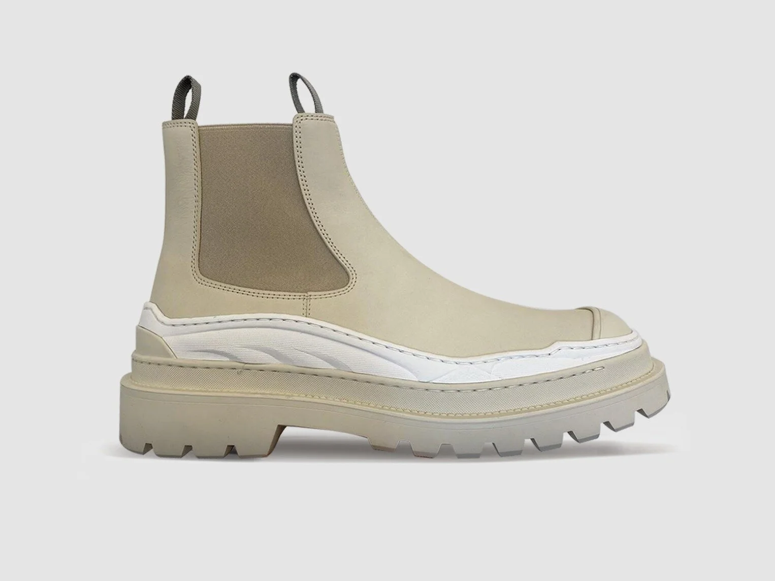 Having turned Dior into the menswear brand-of-the-moment, Kim Jones continues his collaborative streak by tapping into Abe’s design talent for a capsule collection that includes tonal floral knits, leather luggage and textured outerwear. The footwear accompaniments include this unique Chelsea silhouette that appears to draw design cues from Wellington boots. From the top down, the boots carry the typical shapes and elastic opening that you are likely to expect, but morph from formal to functional as you travel down the upper. With a three-layered sole, additional toecap and dual pull tabs at the ankle, the rubberized nature of the tread and wrapping lifts these boots firmly into the future-sphere.