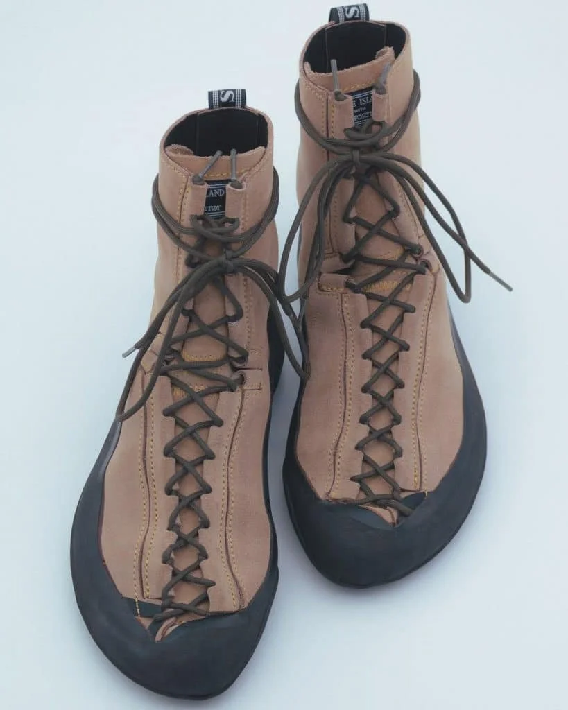 By the late 1990s, outdoors coded footwear began colliding with broader style culture. In 2004 Stone Island collaborated with La Sportiva on climbing shoe silhouettes bearing its compass badge. This was before the term gorp core had been coined but it was a hint. A technical mountain object entered street coded territory. That is where Part 02 lands. Sticky rubber raised the ceiling of what climbers could stand on. It forced footwear to evolve into a controlled system of rubber and structure. And it set the conditions for a later cultural migration, where the same technical signals that once belonged exclusively to the cliff could move into the street.